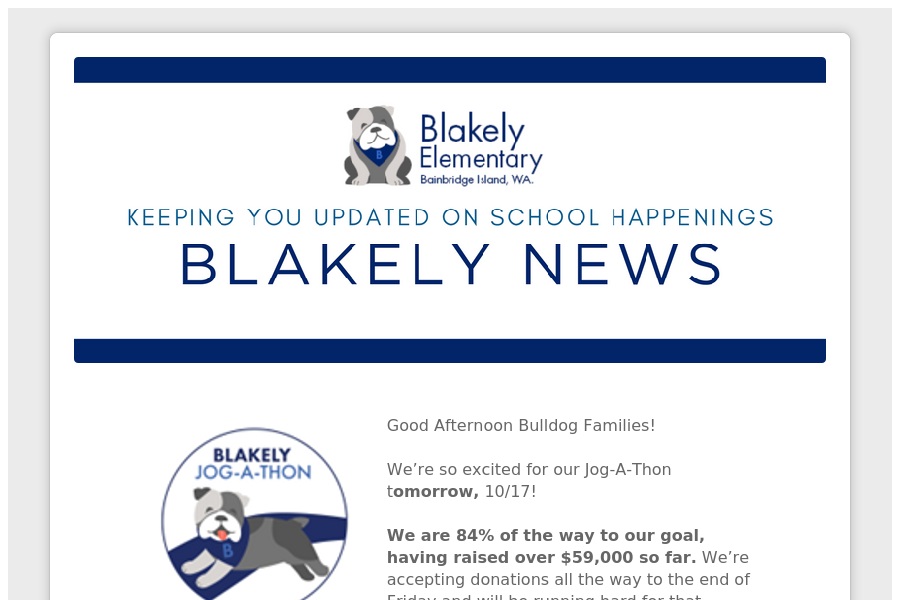 Blakely Jog-A-Thon is tomorrow! Let's Reach Our Goal!